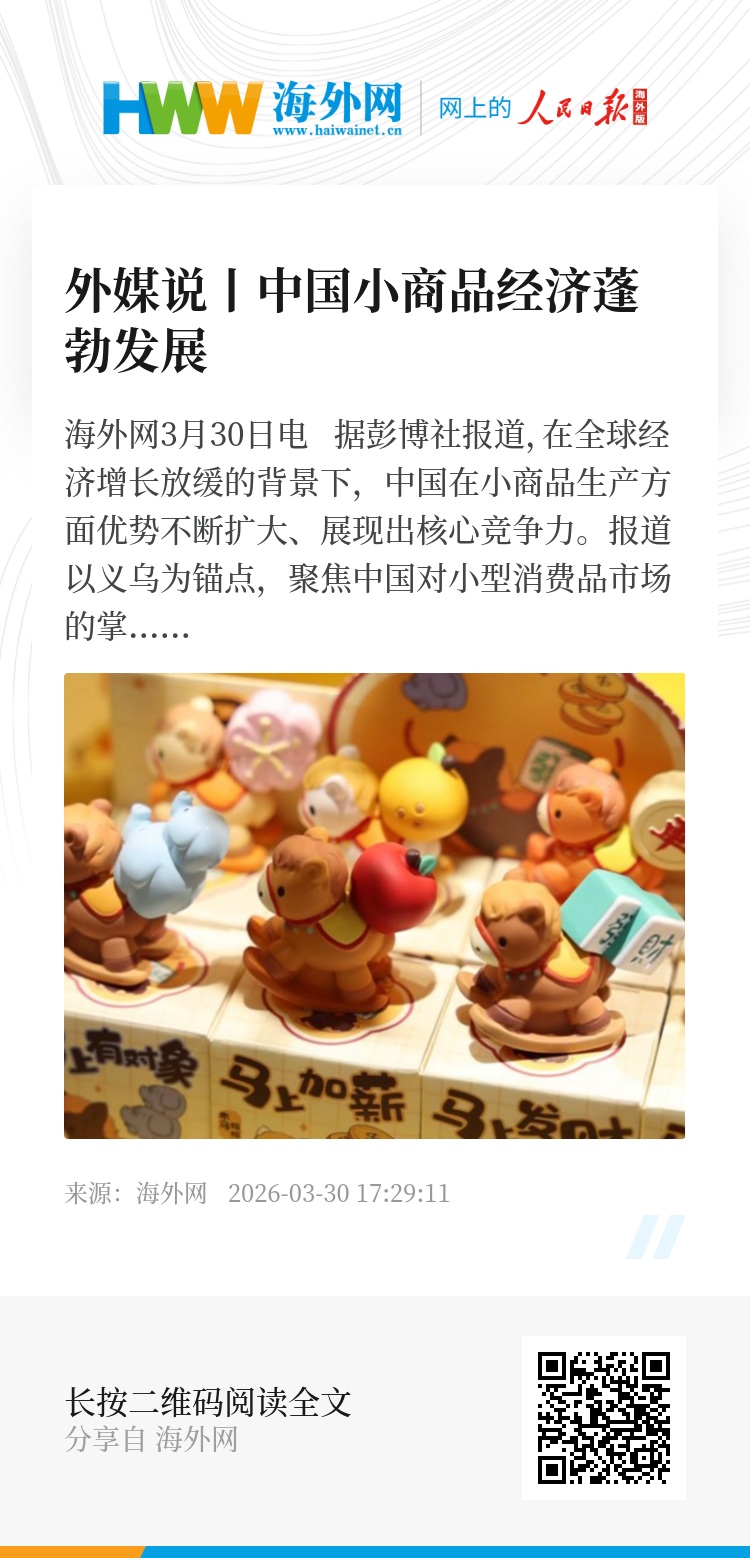 海外网3月30日电 据彭博社报道,在全球经济增长放缓的背景下,中国在小商品生产方面优势不断扩大、展现出核心竞争力。