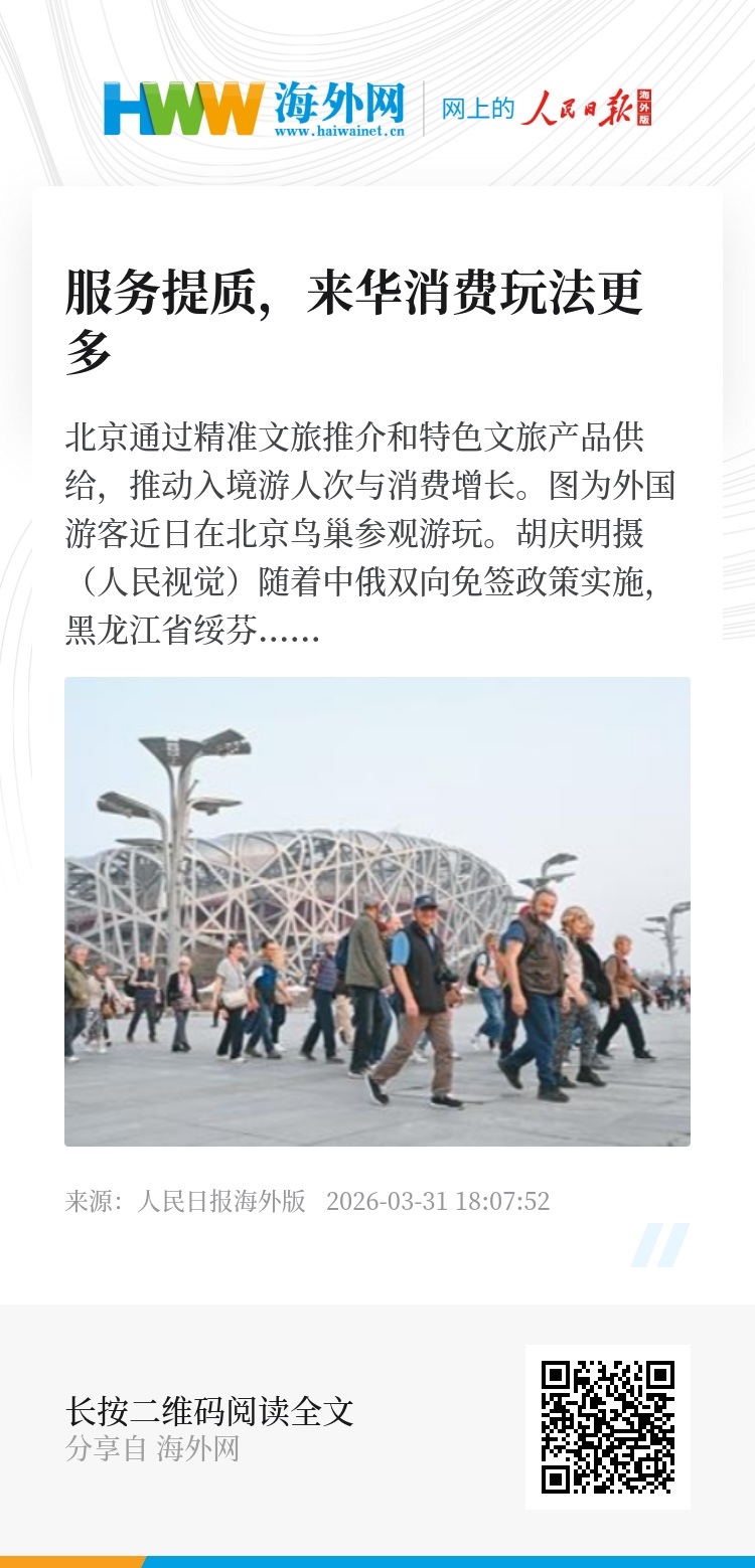 “我们旅行社最近接了很多入境团,外国游客对中国的传统文化特别感兴趣。新政策提出丰富入境游产品供给,这对我们是利好。我们正计划推出更多‘非遗体验游’‘美食文化游’线路。”上海一家旅行社的负责人李经理对本报记者说。