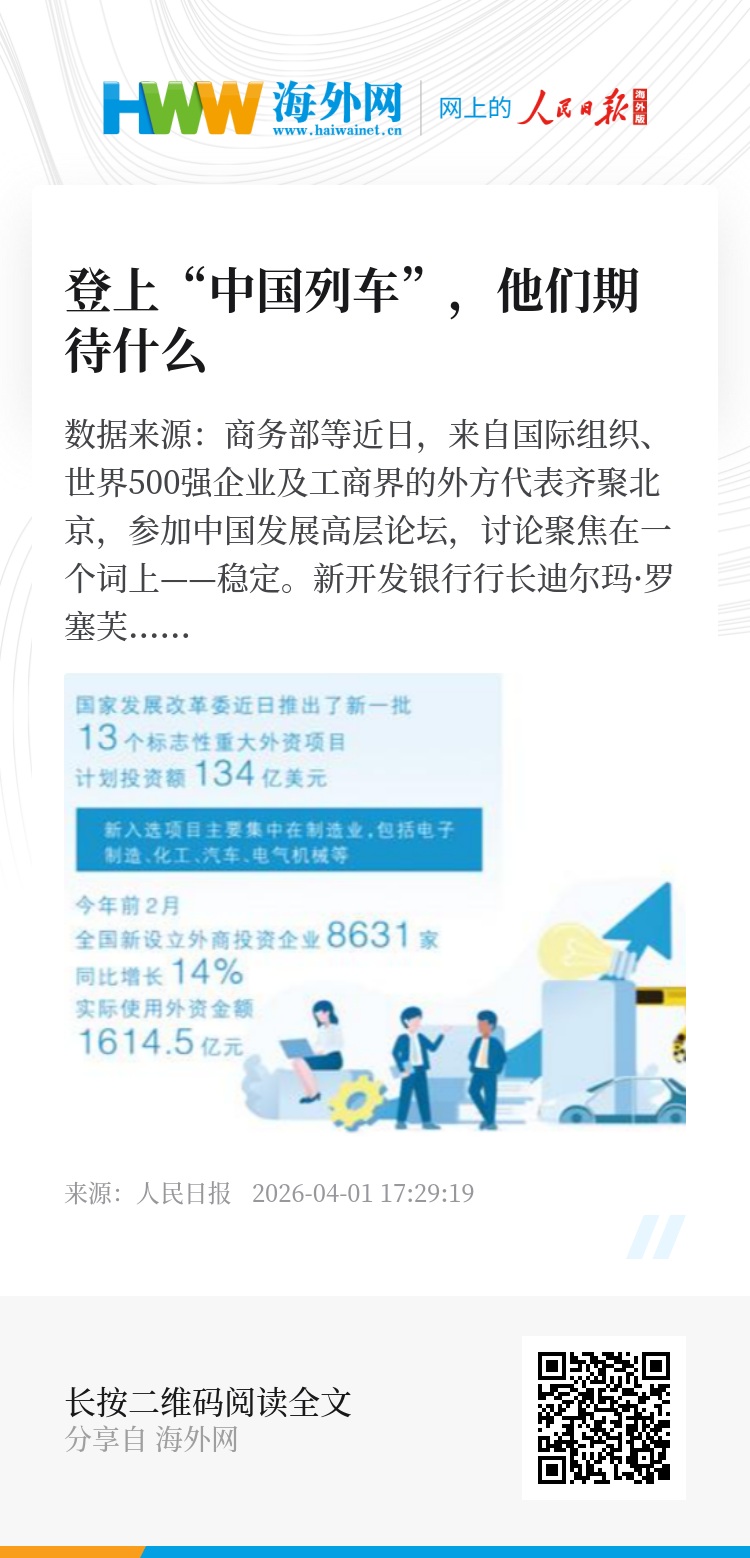 “中国列车”上有什么?是稳稳的发展机遇。比如看得见的,有报道指出,中国日益成为“工厂的工厂”,去年中间产品出口逆势增长,助力新兴经济体打造制造中心。再说“看不见”的,今年3月,我国日均词元调用量突破140万亿,调用者来自全球各地。