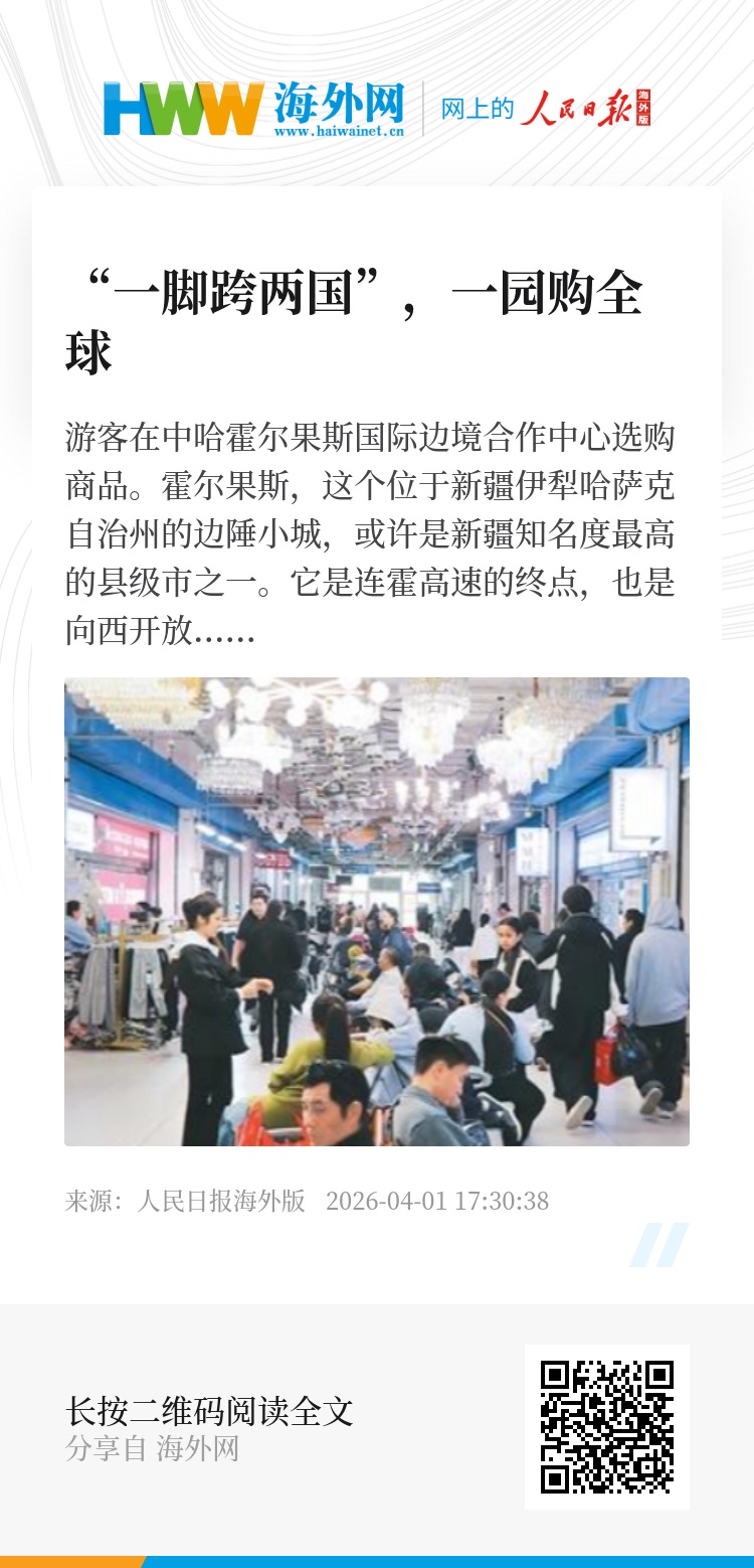 霍尔果斯,这个位于新疆伊犁哈萨克自治州的边陲小城,或许是新疆知名度最高的县级市之一。它是连霍高速的终点,也是向西开放的重要节点。霍尔果斯有片特殊的区域,不用办签证就能体验“一脚跨两国”、一园购全球的魅力,这就是中国与其他国家建立的首个跨境经济合作区——中哈霍尔果斯国际边境合作中心。
