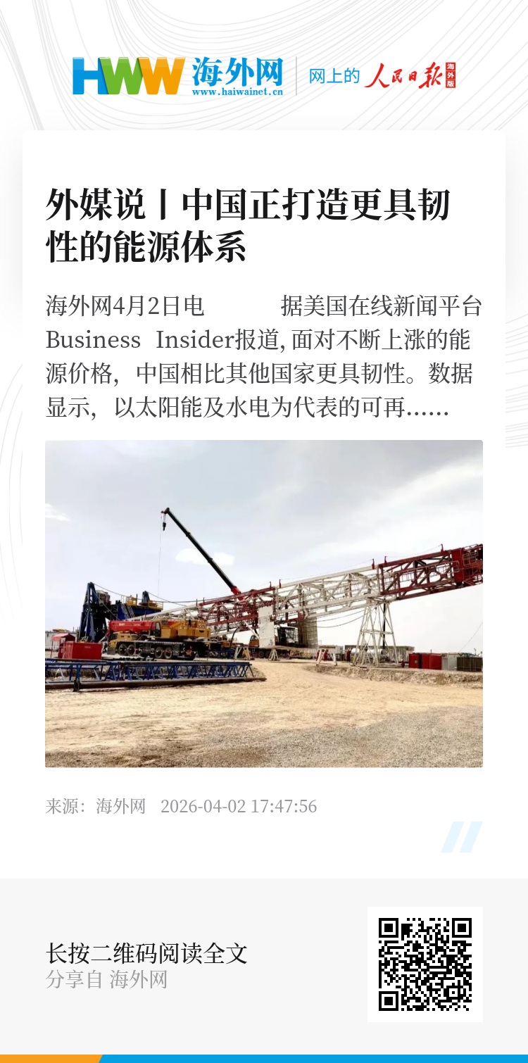 海外网4月2日电 据美国在线新闻平台Business Insider报道,面对不断上涨的能源价格,中国相比其他国家更具韧性。数据显示,以太阳能及水电为代表的可再生能源在中国发电总量的占比越来越高。美国高盛集团分析认为,中国有能力抵御潜在的石油冲击。(石雯欣)