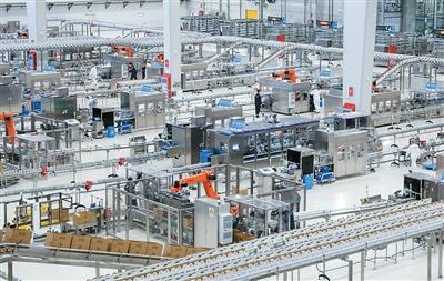 从牧场运来的原奶,经过分离、均质、膜过滤和超高温灭菌等工艺处理后,通过管道输送至灌装车间,每小时可罐装4万盒牛奶,日处理原奶达6500吨……步入伊利现代智慧健康谷内的液态奶全球智造标杆基地,不少游客对着飞速运行的流水线看得起劲。