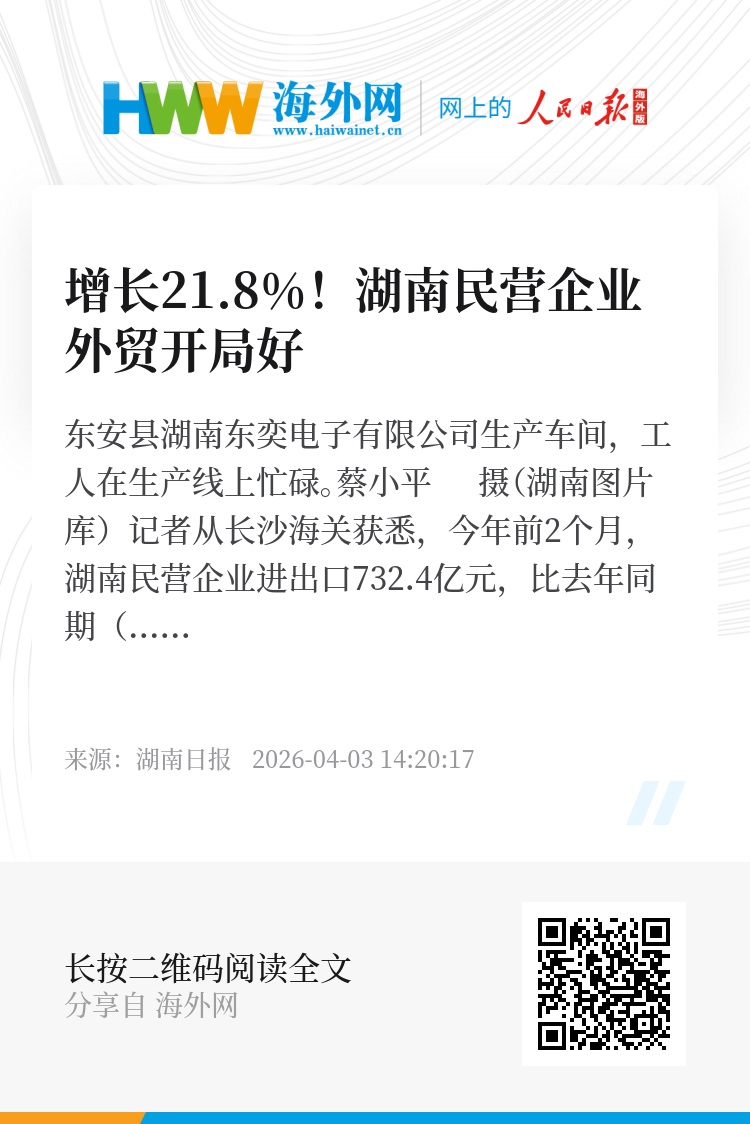 前2个月,长沙市民营企业进出口390.7亿元,增长12%,占同期湖南民营企业进出口总值超五成。郴州市、湘潭市、娄底市、益阳市、湘西土家族苗族自治州民营企业进出口分别增长80.9%、83%、53.7%、116.2%、163.1%。(全媒体记者 彭可心 通讯员 邹素滢 丁仲熙)