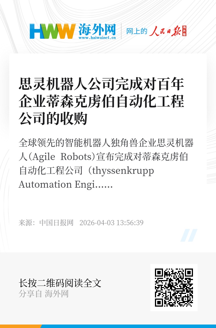 思灵机器人(Agile Robots)创始人兼首席执行官陈兆芃表示:“此次收购是公司推进 Physical AI(物理AI) 战略的重要一步。所谓物理AI,并不是让机器“更聪明”这么简单,而是让人工智能真正进入物理世界:系统能够感知环境、学习真实工业数据,并在运行中实时调整与优化,最终构建具备感知、协同与持续进化能力的智能制造体系。”
