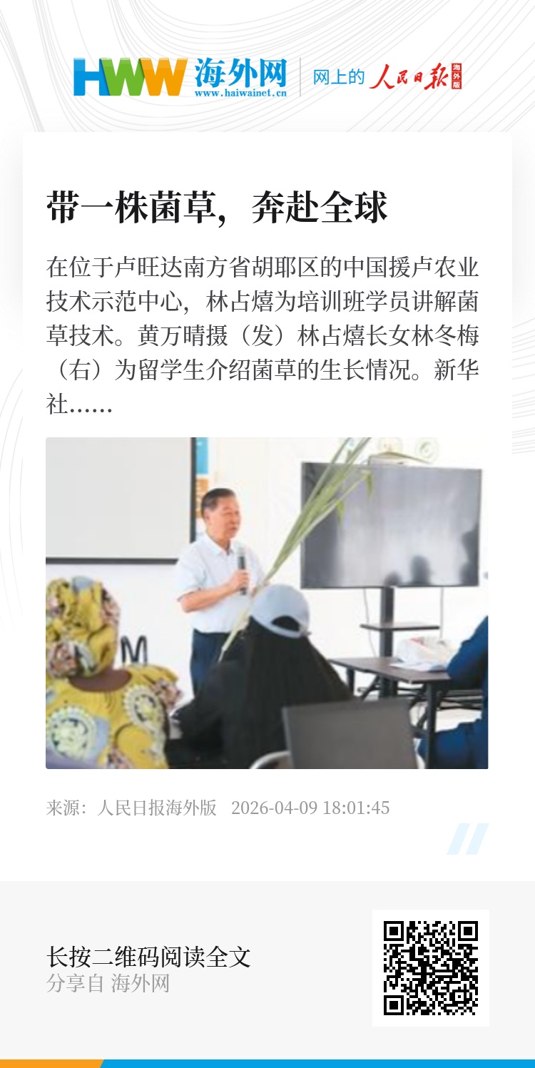 从福建山村的艰难破土,到全球范围的绿意盎然,菌草的故事,是林占熺和团队数十年如一日的坚守,是一项技术从无到有、从弱到强的创新史诗,更是一个负责任大国通过科技合作,与世界分享发展机遇、共谋人类福祉的生动实践。这株“中国草”的环球之旅仍在继续,它所承载的绿色发展梦想与人类命运共同体的理念,正随风播撒,生生不息。(记者 刘发为)