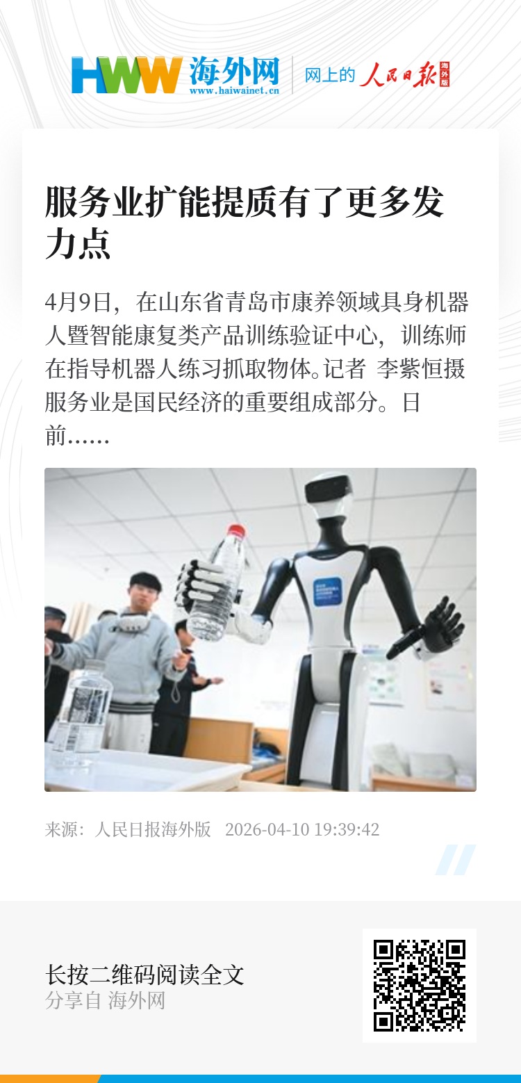 “如今,服务业早已不再是‘附属环节’或‘配套产业’。”商务部研究院副研究员洪勇对本报记者说,一方面,服务业在生产体系中的作用显著增强,特别是金融、物流、软件信息、研发设计等生产性服务业正在深度嵌入制造业和产业链关键环节,推动资源配置效率提升和产业结构优化;另一方面,服务业已成为消费升级的主要载体,文旅、养老、医疗、教育等领域快速发展,直接关系到人民生活品质提升。