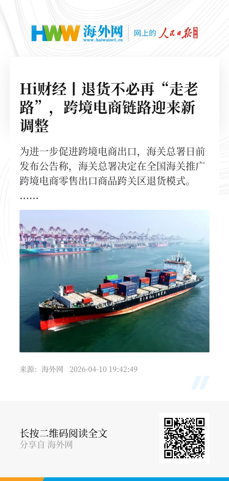 “退货便利化不仅是一项通关便利措施,更是提升我国跨境电商整体竞争力、优化国际消费体验的关键一环,这将为平台、卖家和消费者构建一个成本更低、效率更高、体验更优的逆向物流生态。”欧阳日辉表示。(海外网 穆瑀宸)