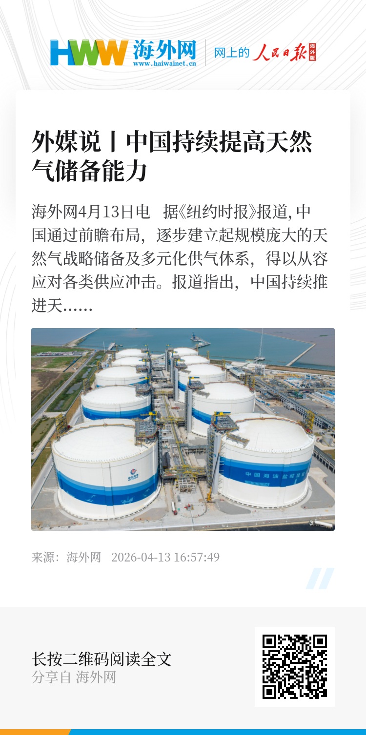 海外网4月13日电 据《纽约时报》报道,中国通过前瞻布局,逐步建立起规模庞大的天然气战略储备及多元化供气体系,得以从容应对各类供应冲击。