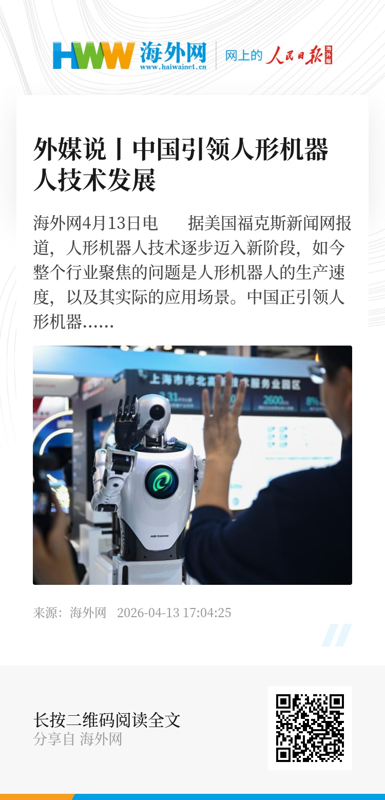 海外网4月13日电 据美国福克斯新闻网报道,人形机器人技术逐步迈入新阶段,如今整个行业聚焦的问题是人形机器人的生产速度,以及其实际的应用场景。中国正引领人形机器人的生产,同时提前将人形机器人投入实际应用场景,如物流运输、家政保洁等。(孙橙橙)