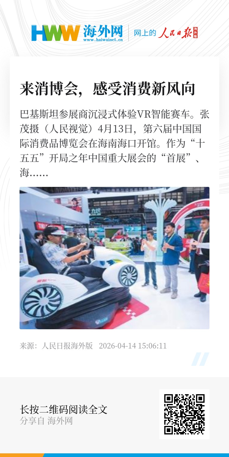 4月13日,第六届中国国际消费品博览会在海南海口开馆。作为“十五五”开局之年中国重大展会的“首展”、海南自贸港全岛封关运作后的“首秀”,本届消博会紧扣“国际”,聚焦“精品”,突出“首发”,总展览面积扩大至14.3万平方米,比上届增加1.3万平方米;预计有超200件新品发布,比上届翻一番。