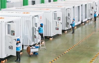 位于江苏省南通市通州区十总镇的一家电器制造公司车间内,工人在生产供应国内外市场的各类储能配套产品。