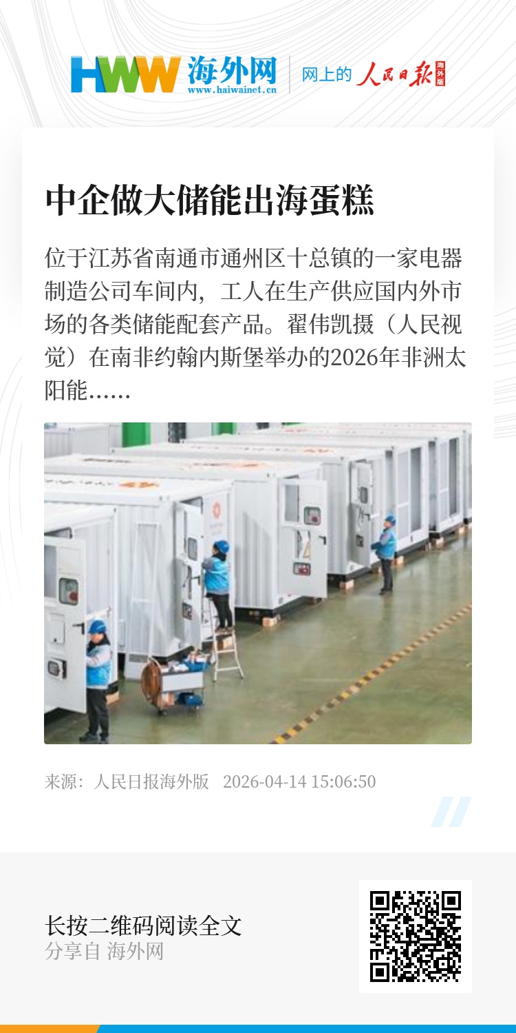 采访中,参与出海的储能企业表示,他们的确感受到了这些市场机遇。
