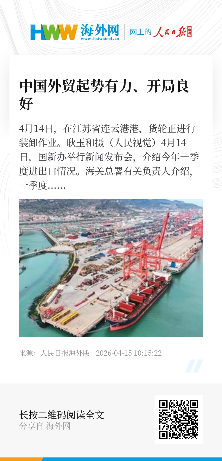 推动跨境电商加海外仓模式扩容升级,促进外资扩大本地化生产,保障海南自贸港平稳有序运行……今年以来,更加积极有为的宏观政策持续发力,中国外贸活力足、动能强。