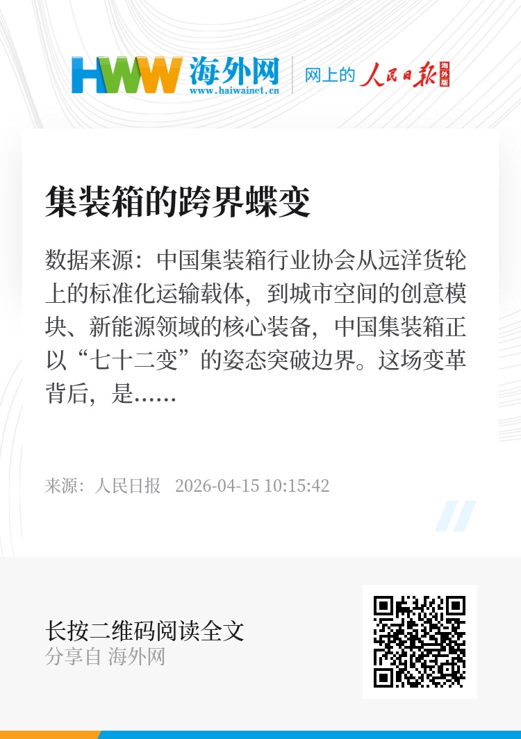 从材料的“绿色革命”到功能的“场景突围”,再到生态的“协同升级”,中国集装箱的“七十二变”,本质上是新质生产力融入传统产业的过程。未来,随着AI、物联网等技术的深度融合,这个“中国好物”将继续突破想象边界,在变化中创造连接,在连接中重塑价值,在全球贸易、能源转型、城市发展中发挥更大价值,成为中国制造业高质量发展的鲜明注脚。(记者 王伟健 程远州 窦 皓)