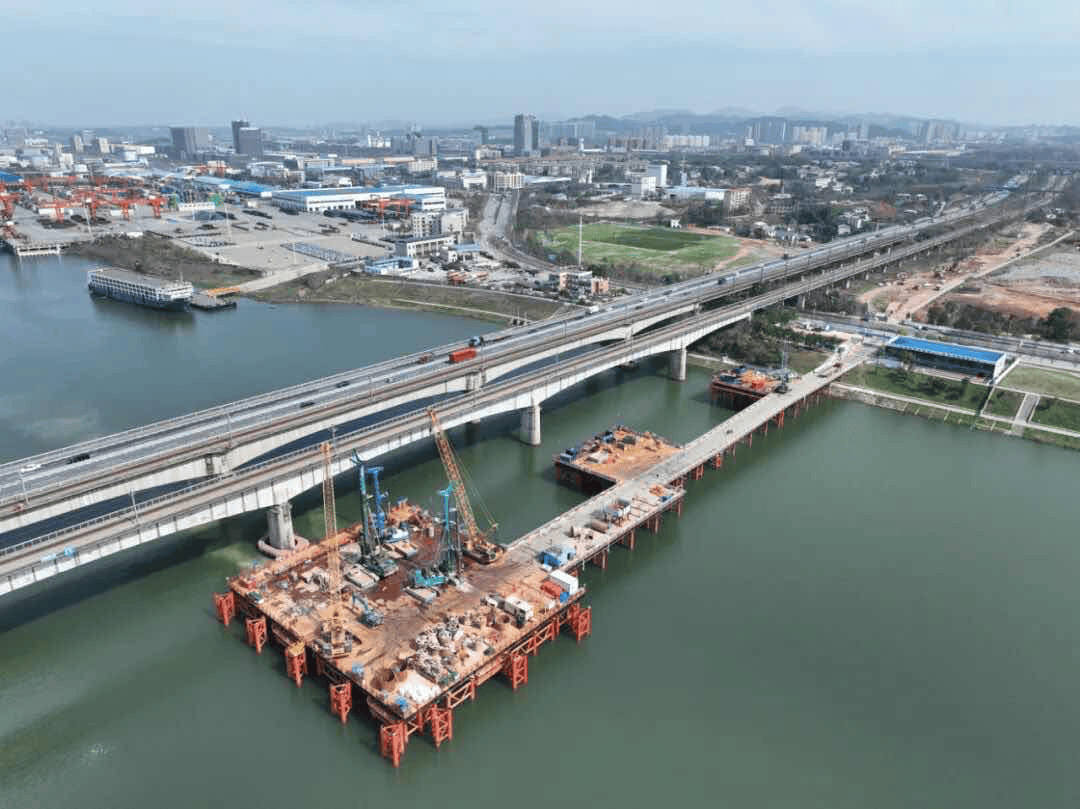 2026年3月,长赣高铁长沙湘江铁路特大桥主桥首个主墩桩基完工(图源:905交通广播)