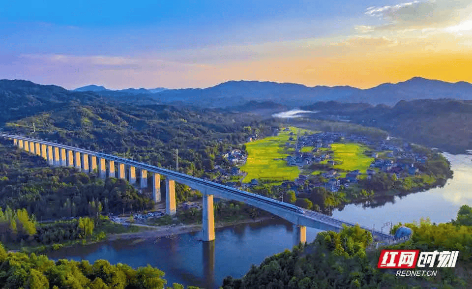 列车行驶在张吉怀高铁白岩村舞水河大桥上(宿昊明/摄)