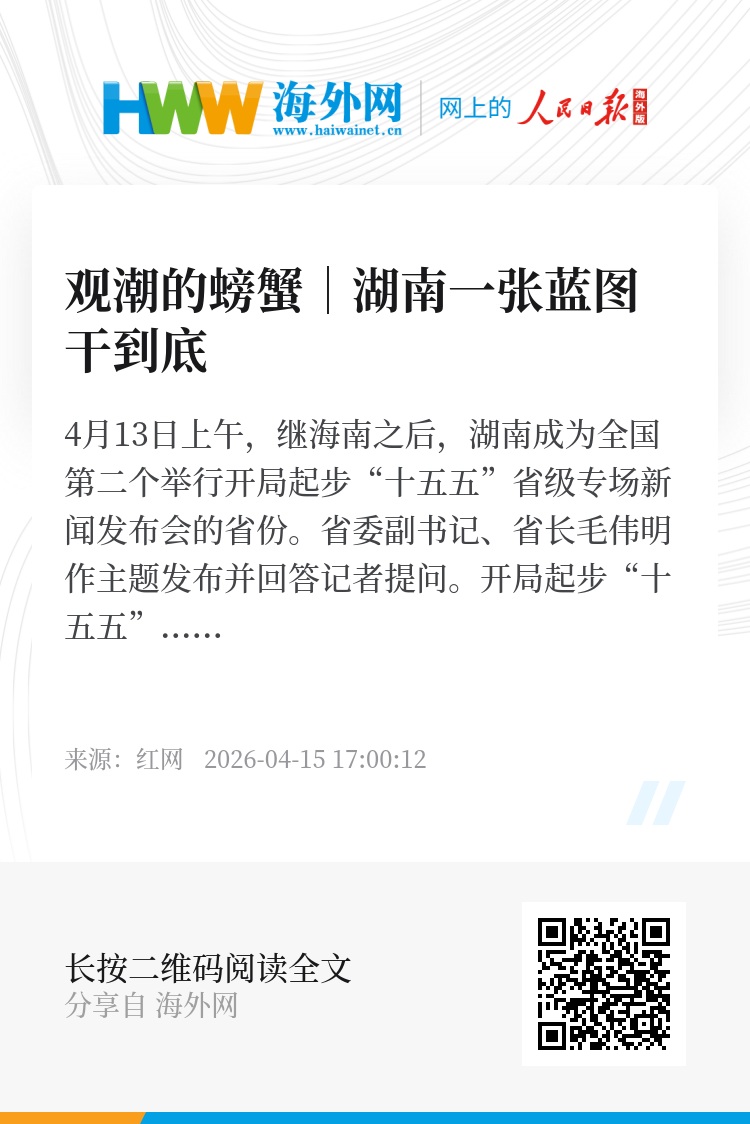 4月13日上午,继海南之后,湖南成为全国第二个举行开局起步“十五五”省级专场新闻发布会的省份。省委副书记、省长毛伟明作主题发布并回答记者提问。