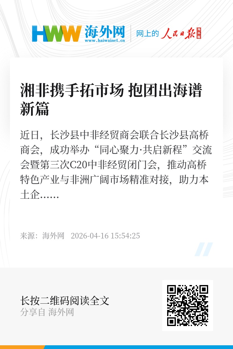 据悉,此次活动是长沙县工商联推动“本地产业+非洲市场”深度对接的务实举措。下一步,长沙县中非经贸商会将持续发挥桥梁纽带作用,做强C20中非经贸对接平台,联动更多优质商会与企业,打通信息、渠道、资源、风控全链条服务,让更多湖南好产品走进非洲、扎根非洲,推动中非经贸合作走深走实、行稳致远。