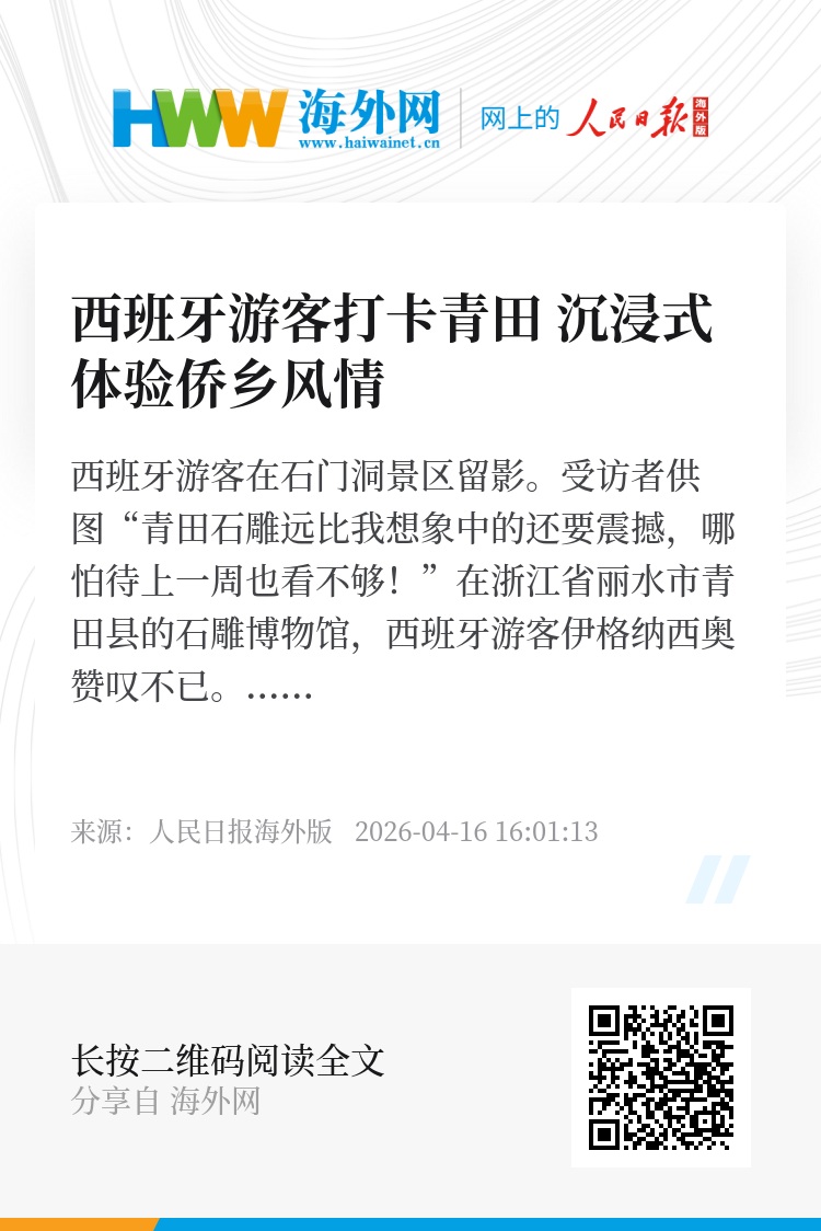 “西班牙也有绝美的自然风光,但青田的山水与建筑更具历史故事和人文情怀。”游客波尔泰拉表示,“在青田的山水乡野间,能感受到人与自然更加紧密的联结。”