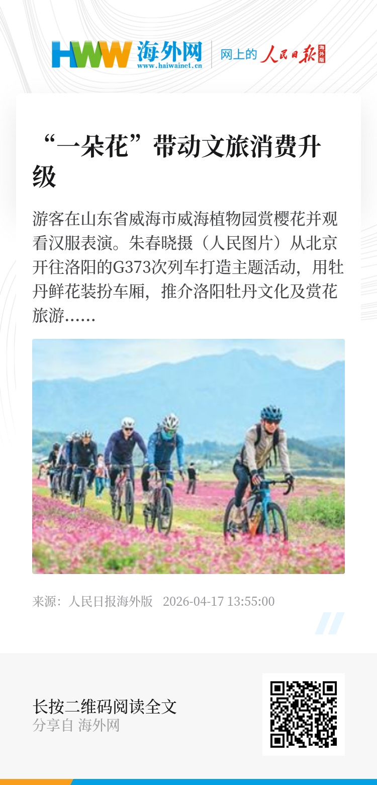 “在线平台数据显示,清明假期的游览观光类度假商品成交额同比大涨72%。这种由‘一朵花’带动的食、住、行、游、购、娱全链条消费,正是当前文旅消费结构升级的生动缩影。”中国旅游研究院研究员杨劲松告诉记者。