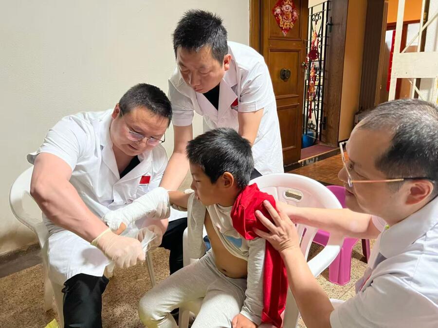 事发深夜,医疗队驻地突然接到紧急求助,一名当地儿童不慎摔伤,右上肢剧烈疼痛,哭闹不止,家属焦急万分地将孩子送至医疗队寻求救治。队长马征接到求助后,第一时间启动应急救治流程,迅速协调骨科、放射科队员即刻到岗,全力保障患儿得到及时、专业的诊疗。