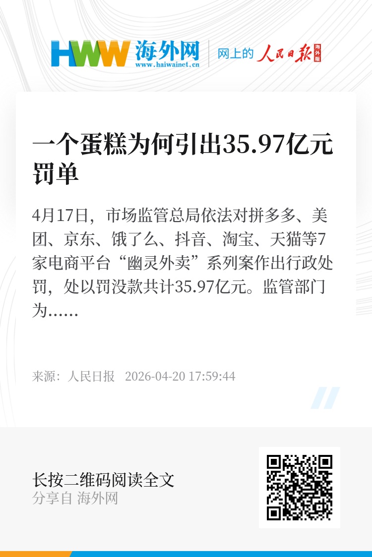 4月17日,市场监管总局依法对拼多多、美团、京东、饿了么、抖音、淘宝、天猫等7家电商平台“幽灵外卖”系列案作出行政处罚,处以罚没款共计35.97亿元。