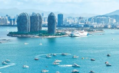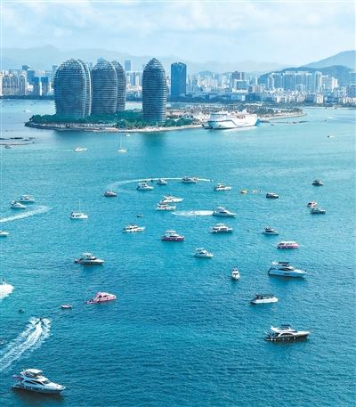 近期海南省三亚市游艇旅游热度不断攀升。图为游艇竞渡三亚海面。