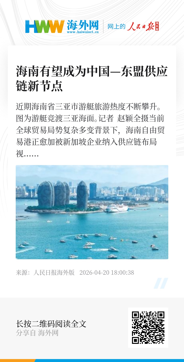 “从更长周期来看,海南将成为新加坡企业进入中国市场的一种路径。”他说,“这一过程是渐进的:从小规模试点开始,在建立信心后逐步扩大。”
