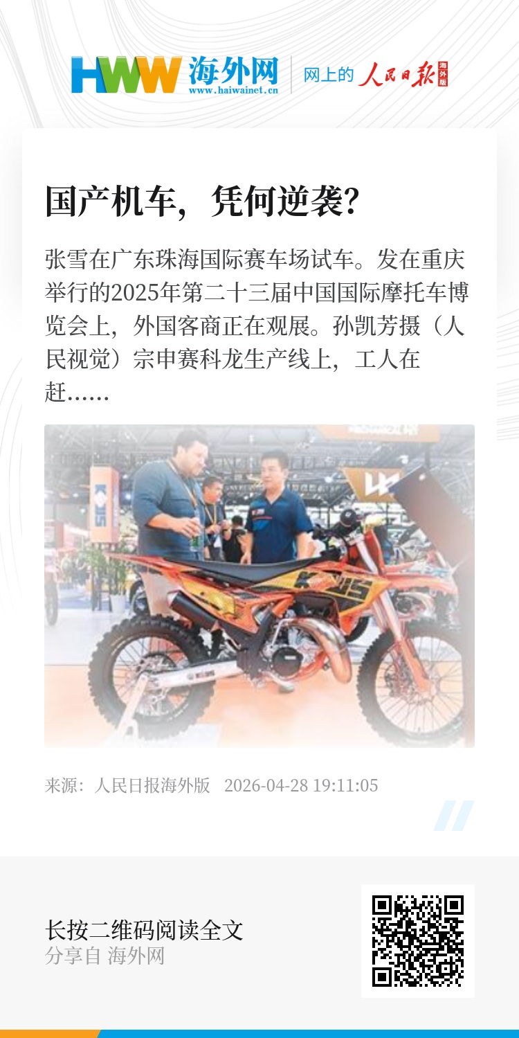 从赛道夺冠到全球突围,国产机车的逆袭绝非偶然。它是技术深耕、产业集群与政策协同三股力量汇聚的必然结果——而这,或许只是中国摩托车产业新征程的起点。(记者 王欣悦)