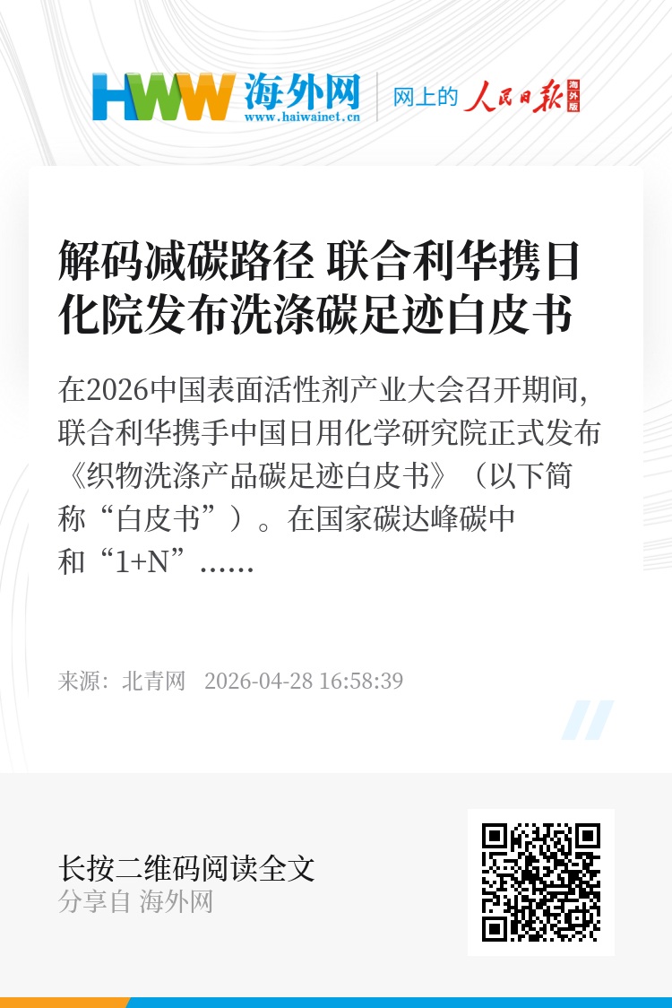 在2026中国表面活性剂产业大会召开期间,联合利华携手中国日用化学研究院正式发布《织物洗涤产品碳足迹白皮书》(以下简称“白皮书”)。在国家碳达峰碳中和“1+N”政策体系不断完善的背景下,该白皮书是国内首个以国标洗衣粉和洗衣液为研究对象,通过国际通行的生命周期评价方法,系统开展碳足迹量化计算和减排潜力识别的行业级研究成果,为中国洗涤剂行业厘清碳排放关键来源,并勾画对应低碳行动路径。